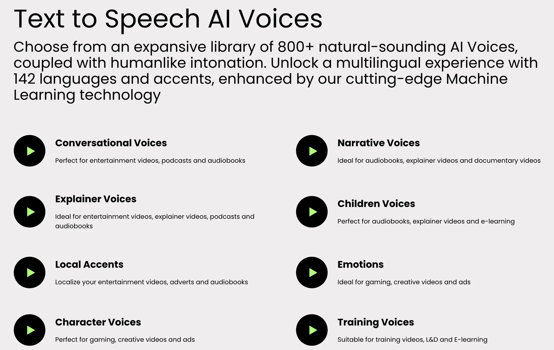 • Bibliothèque de 800+ voix et 140 langues