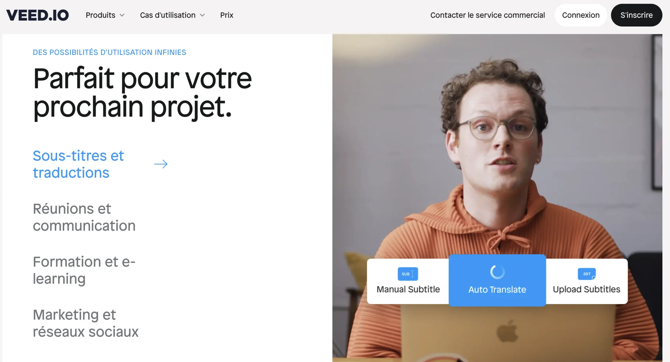 Le sous-titrage automatique est l’une des fonctions phares qui fait la réputation de l’outil. En un clic, Veed transcrit votre audio et génère des sous-titres synchronisés prêts à l’emploi.